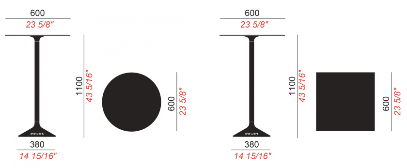 Finalmente, la versión B/R recuerda la típica forma rectangular de la mesa bistró, que se puede adosar a otra en ambas direcciones según las necesidades de uso.